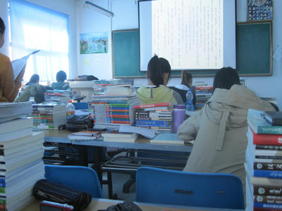 こんなに教科書積み上げて机使いにくくないんだろうか。